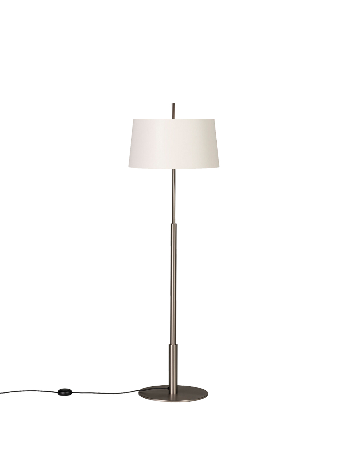 - TMD Floor Lamp, Satin Nickel Structure/White Linen Lampshade